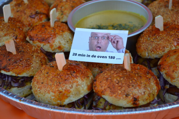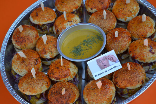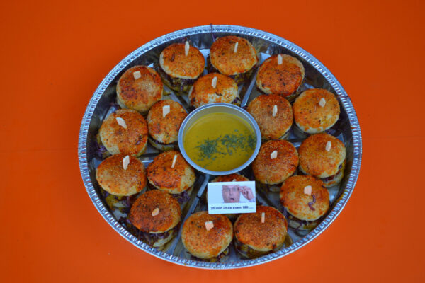 18 Mini Hamburgers incl. sausje (voor in de oven) √ incl schaal