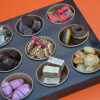 Op zoek naar een presentatie die net zo praktisch als lekker is? Dit luxe dessert plateau is voorzien van handige uitneembare bakjes. Ideaal voor een verjaardag, babyshower of traktatie waarbij iedereen makkelijk zijn favoriete zoetigheid kan pakken.