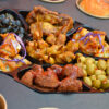 – Leuke schaal met sate, falafel,olijf, kip en dumplings