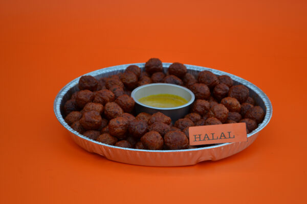 Handige ovenschaal gevuld met halal ballen! 100 stuks
