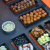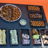 Wilt u uw gasten verrassen met een kleurrijke en gevarieerde presentatie? Dit luxe tapasbuffet wordt geleverd op een stijlvol disposable plateau en bevat een uitgebreide mix van warme oosterse snacks, hartige vleeswaren en zoete mini-desserts.