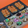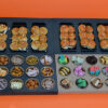- 1 plateau met desserts zoals brownies, muffins, carrotcake, donuts, eclairs , wafeltjes etc..